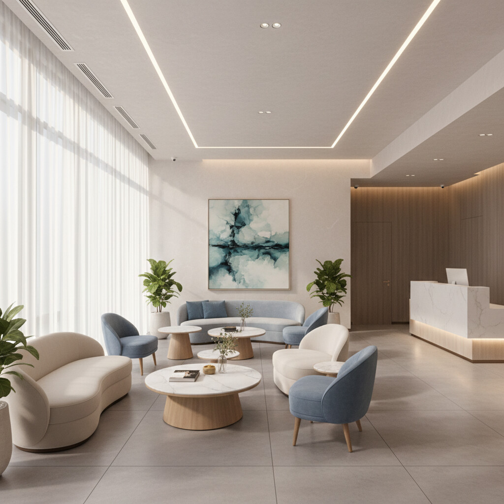 Prompt: A mature, confident man in his late 40s with a subtle, naturally receding hairline, sitting in a well-lit, modern consultation room. He is looking thoughtfully ahead. Soft, neutral background. Realistic photo style.
