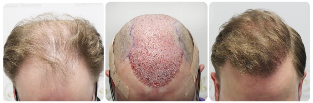 In this procedure, we transplanted a total of 4081 grafts, equating to 8253 individual hairs. Dr. Bonaros personally conducted every step of the Follicular Unit Excision (FUE) hair transplant. The grafts were extracted using a 0.85 mm motorised punch and implanted using sharp Implanter Pens.