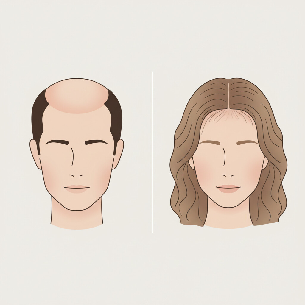 Female pattern hair loss (FPHL), also known as androgenetic alopecia, is the most common cause of hair loss in women. It differs significantly from male pattern baldness. While men typically experience a receding hairline and thinning at the crown, women usually notice a generalized thinning over the top and crown of the scalp. The frontal hairline often remains intact, but the part widens, and the hair becomes visibly finer and less dense.